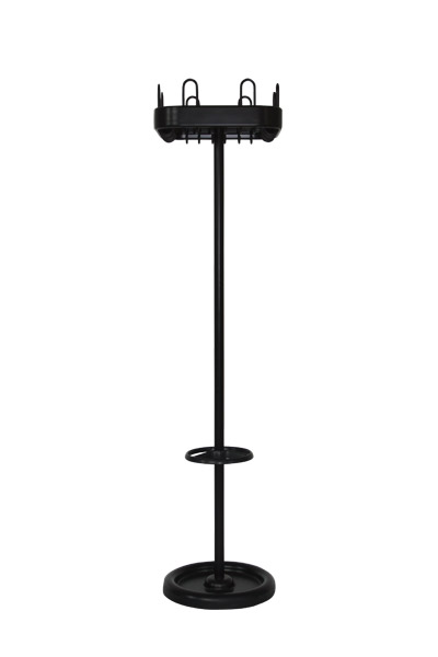 1.750 mm hoch, Standrohr 35 mm ø, Schirmhalter,Hakenkranz 420 x 420 mm, drehbar, mit 8 Hut- und 24 Mantelablagen, Gussfuß ca. 400 mm ø, schwarz kunststoffummantelt