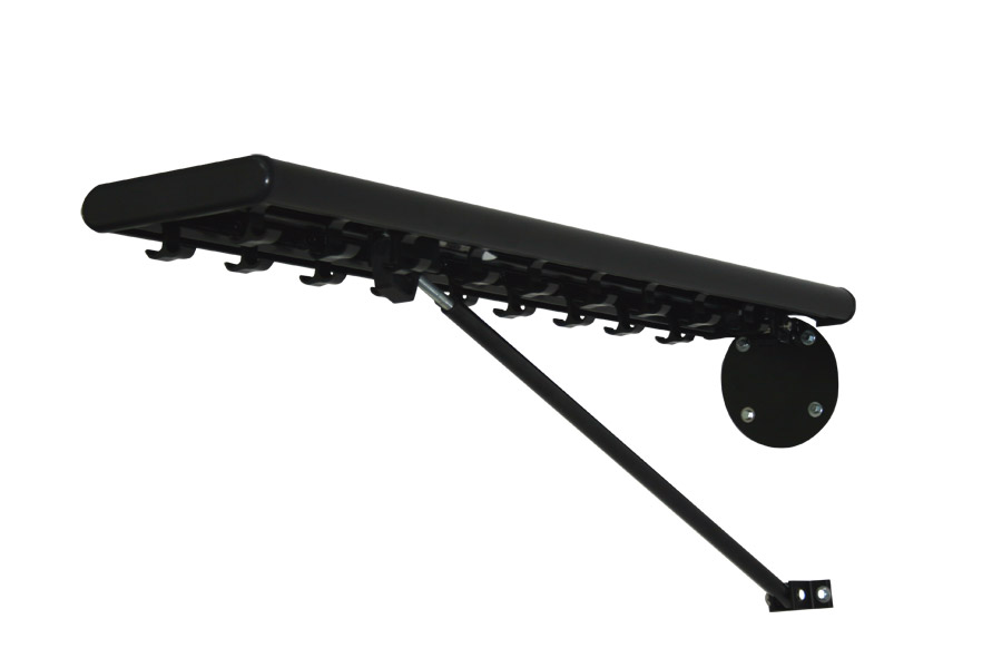Montageabstand ca. 1000 mm. Ideal geeignet für Raumbereiche, die nicht ständig als Garderobe, sondern auch anderweitig genutzt werden. Beim Aufklappen rastet die Klappgarderobe selbstständig in Gebrauchsstellung ein, ein Handgriff genügt zum Lösen der Sperre
