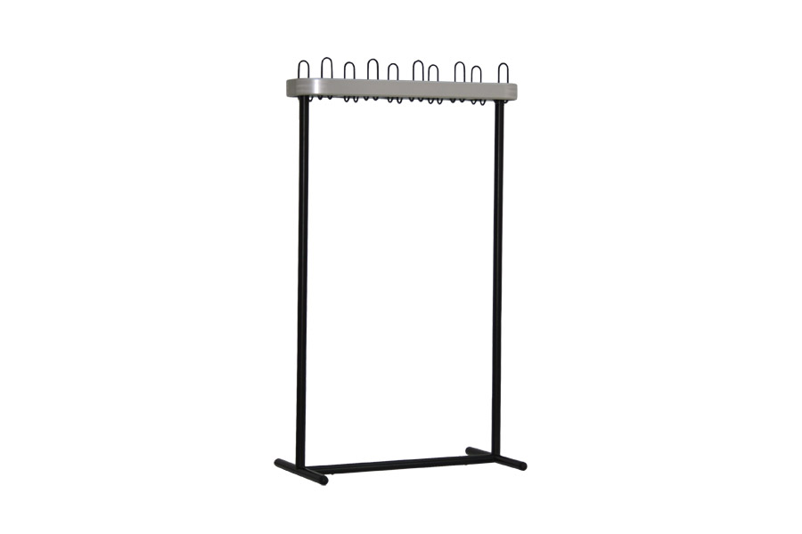 Reihengarderobenständer System Aachennnmit Hut- u. Mantelhaken in 200 und 150 mm Abstand, schwarz/mattsilber, Höhe 1685 mm, Fußbreite 510 mmnnAndere Farben und Längen auf Anfrage