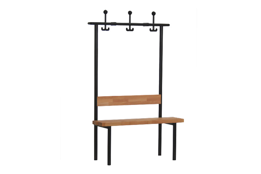Konsolen aus Rundrohr 40 mm ø, kunststoffbeschichtet, Füße mit Bodenschonern oder Bodenbefestigungsbolzen zur unsichtbaren Bodenbefestigung. Hakenabstand 200 mm.